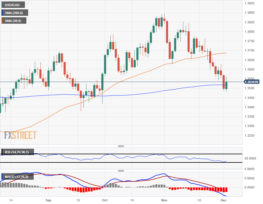 The Canadian Dollar (CAD) fell back against the US Dollar (USD) in a broad-market risk rebound that sent the USD/CAD higher after rebounding from the 1.3500 handle.