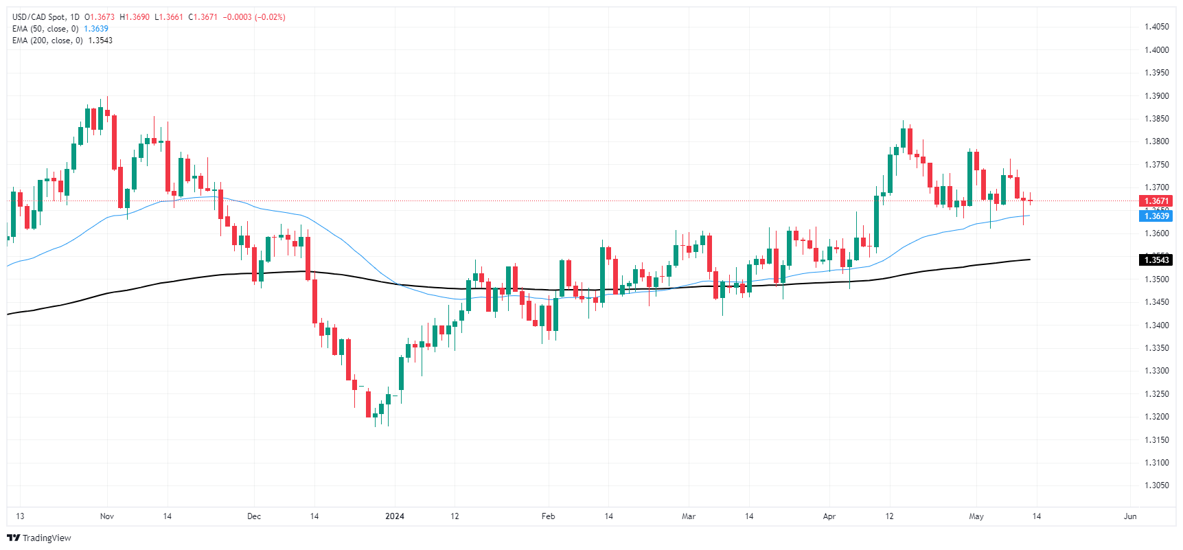 The USD/CAD struggled to find momentum on Monday, holding in place near 1.3680. Bids are treading water just above a near-term supply zone from 1.3660 to 1.3615. Topside momentum is capped by the 200-hour Exponential Moving Average (EMA) just below the 1.3700 handle, while short-sellers have been unsuccessful in dragging the pair back down to 1.3600.