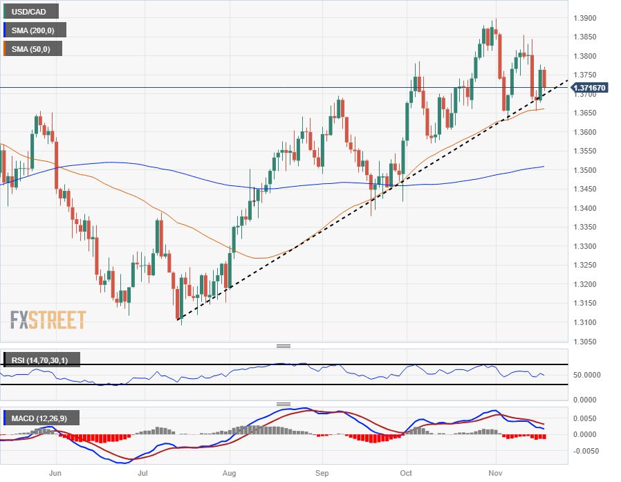 The Canadian Dollar (CAD) is testing back towards the 1.3700 handle against the US Dollar (USD) as broader markets tilt into the risk-on side, bidding the USD down across the board heading into the market close.