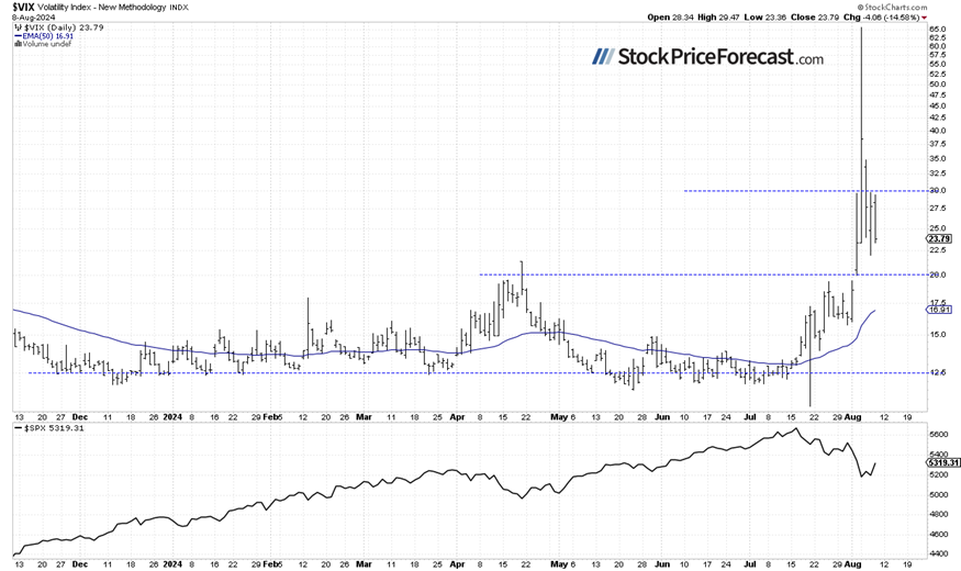 In my Stock Price Forecast for August on Friday, I noted “a sharp reversal occurred, and by the end of the month, the S&P 500 experienced significant volatility following the sell-off. August is beginning on a very bearish note, but the market may find a local bottom at some point.”