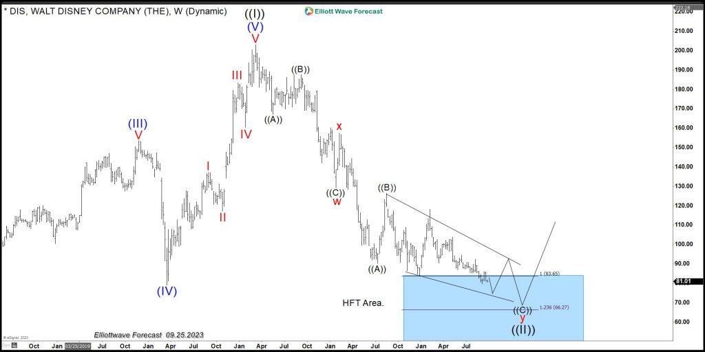 Disney has been in a tremendous decline since it peaked at $203.02 back 03.08.2021. The Peak ended a Grand Super Cycle and since then it has corrected in larger pullback. The Elliott Wave Theory provides us with cycle degrees determined by the time each cycle lasts. So the Grand Super Cycle is the highest cycle degree and can sometimes last even centuries. Here is the page that explains all the details within the Theory and provides new traders with enough guidelines to navigate the market. Let’s take a look at the Elliott Wave outlook for Disney.