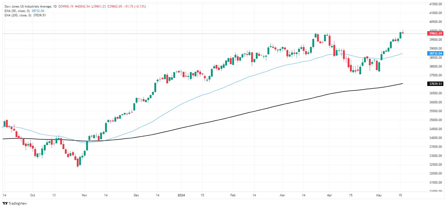 The Dow Jones Industrial Average (DJIA) pierced the 40,000 major price level on Thursday after equities floated higher early during the US session amidst a thin data calendar. Stock indexes reached fresh all-time highs following a midweek US inflation print showing price growth continues to cool, sparking fresh hope for Federal Reserve (Fed) rate cuts. However, Fedspeak weighed on risk appetite, and stock indexes broadly ended Thursday lower.