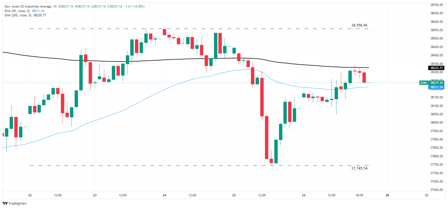 The Dow Jones is trading well within the week’s price range, setting Friday’s low bids at 38,048.33 before recovering into an intraday high of 38,335.71. The major equity index is still down slightly from the week’s peak prices at 38,556.80, but is recovering firmly after setting the week’s lows at 37,745.54 on Thursday’s pullback.