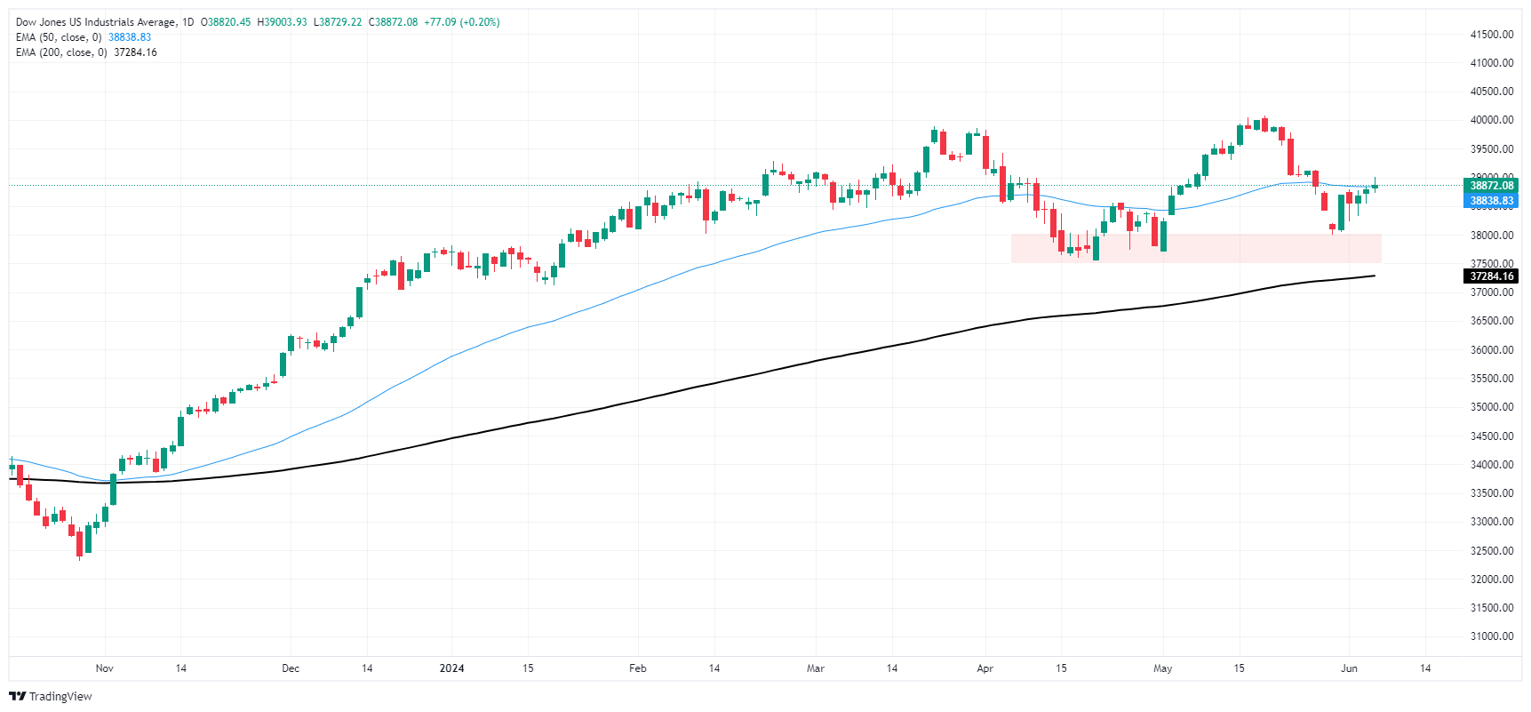 The Dow Jones is up around 60 points on Thursday, trading within a fifth of a percent from the day’s opening bids. Buyers have been struggling to haul bids back over the 39,000.00 handle, but the major equity index has recover from a near-term dip to 38,000.00.