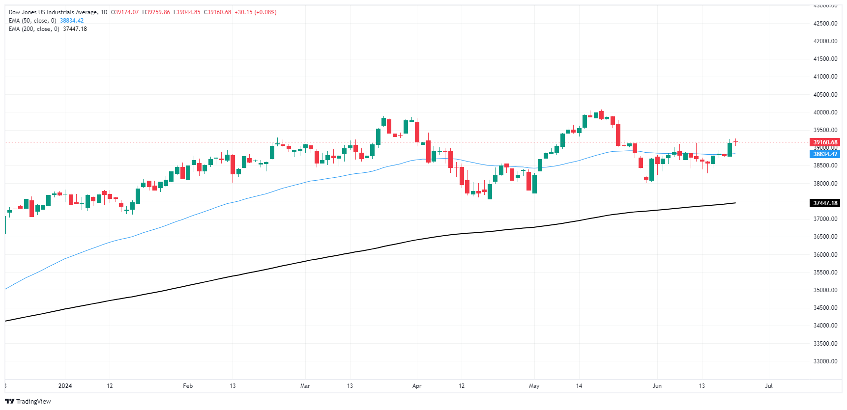 The Dow Jones Industrial Average (DJIA) stubbornly flattened on Friday, treading water after US equity markets were disappointed by a better-than-expected print in June’s US Purchasing Managers Index (PMI) figures. Markets hoping for a not-too-steep decline in US economic data to push the Federal Reserve (Fed) towards rate cuts were disappointed by upbeat activity survey results, leaning into the “bad news is good news” narrative driving financial markets singularly focused on achieving cheaper lending and financing rates from the Fed.