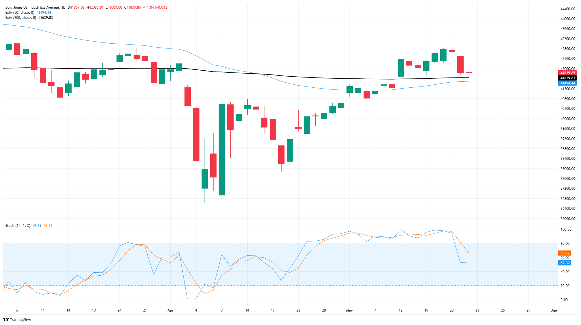 Bond markets remain on shaky footing, limiting upside momentum and boxing the Dow Jones out of a clear bullish reversal. The 30-year Treasury yield is still parked north of 5%, and despite a slight easing, the 10-year yield remains above 4.5%. Rising funding costs come at a time when the Trump administration is hoping to help alleviate budget pressure from its planned steep tax cuts using cheap debt. However, rising (or at least sticky) bond yields, coupled with a Federal Reserve (Fed) that remains staunchly apprehensive about cutting interest rates ahead of possible economic fallout from Trump tariffs, are systematically taking a hatchet to those plans.