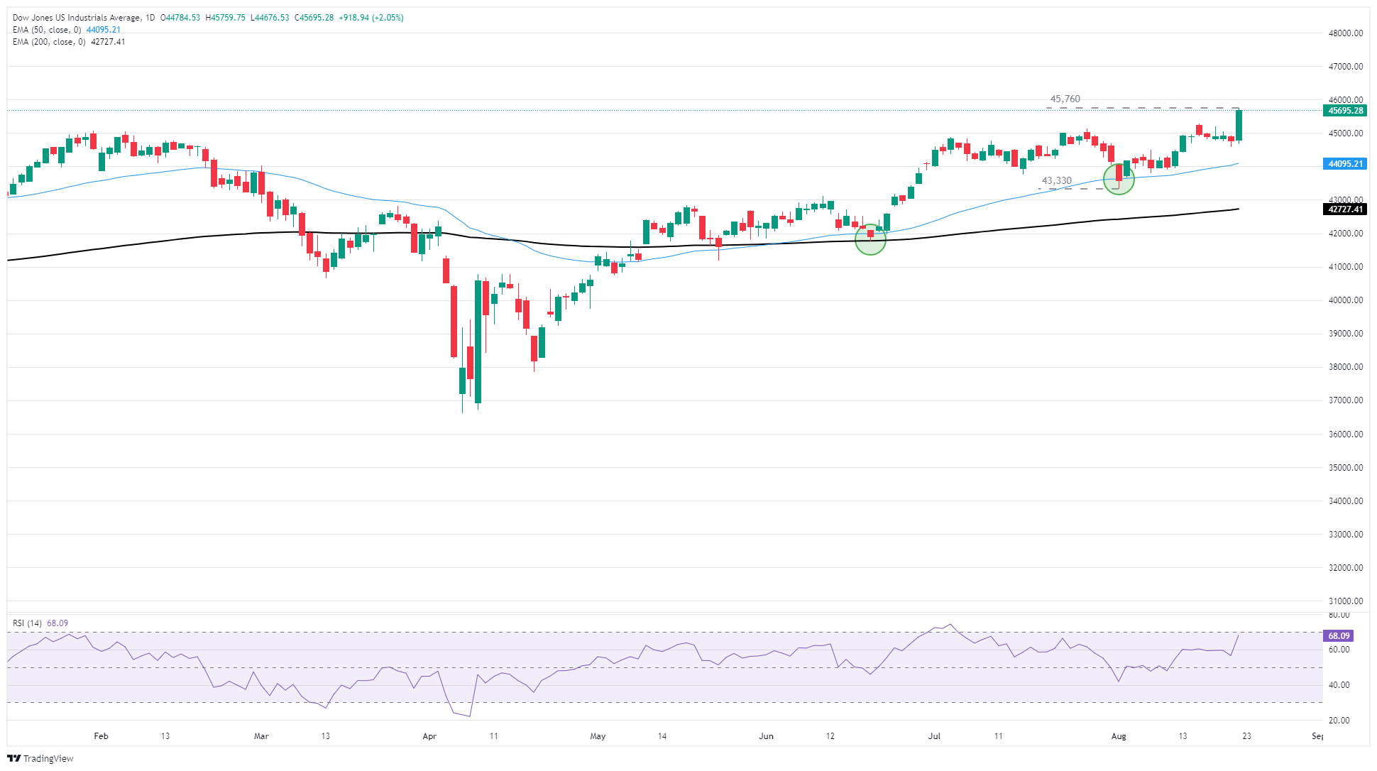 The Dow Jones Industrial Average (DJIA) soared to new all-time highs on Friday, testing above 45,700 for the first time since the index’s inception. The Dow Jones soared over 900 points in a single day as investors piled ferociously back into bullish bets, as a September interest rate cut looks to be in the bag.