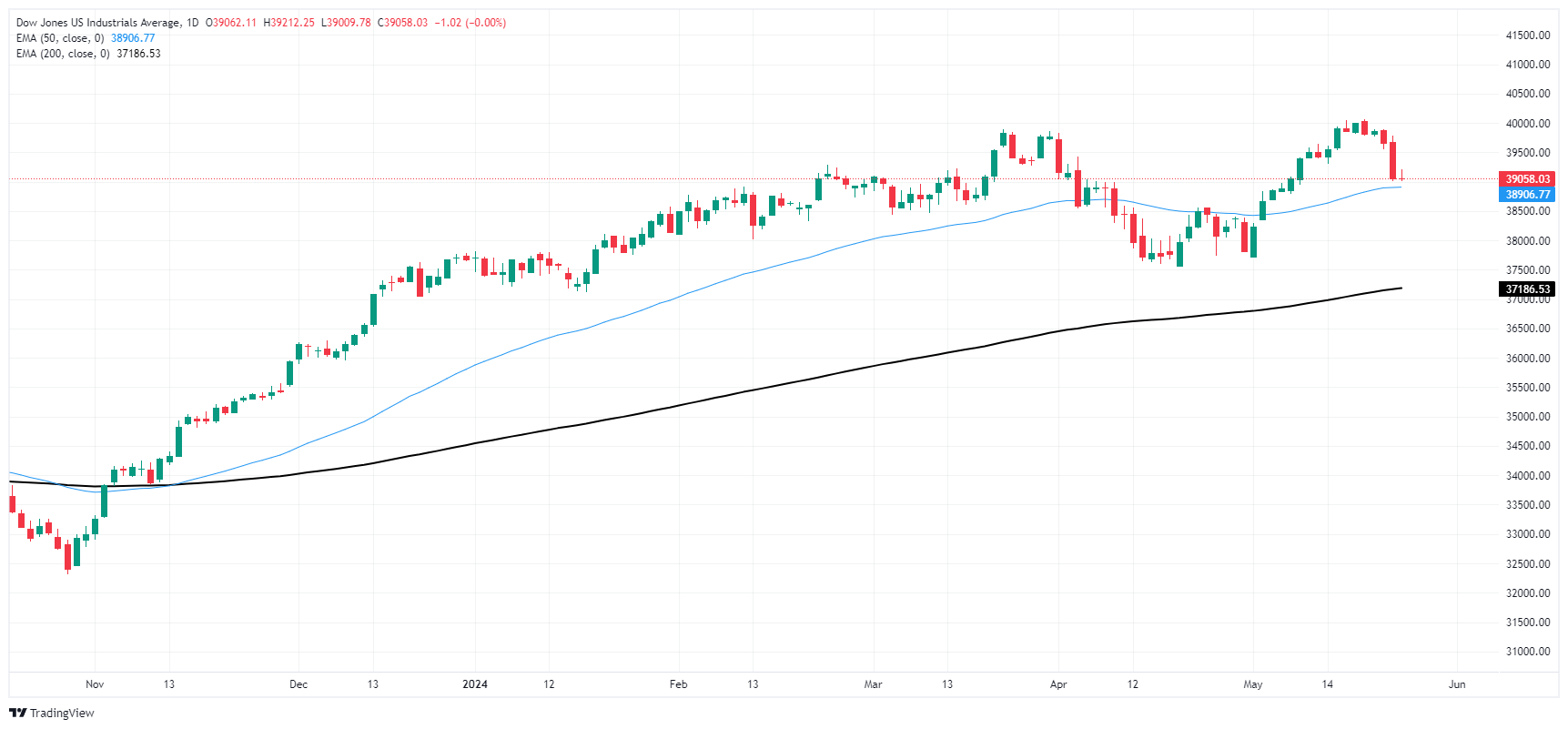 Downside momentum is running into technical support from the 50-day Exponential Moving Average (EMA) at 38,908.78. Despite near-term losses, the Dow Jones remains firmly bullish, trading deep into bull country and up 3.7% in 2024.