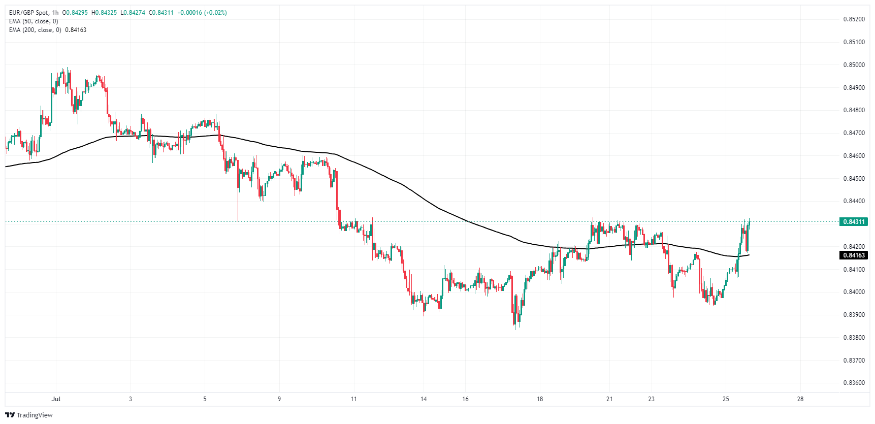 Euro bidders will be looking for a three-stage recovery off the back of dual Euro-area economic data showings and a rate cut from the BoE next week, but EUR/GBP remains buried well below the 200-day Exponential Moving Average (EMA) at 0.8545.