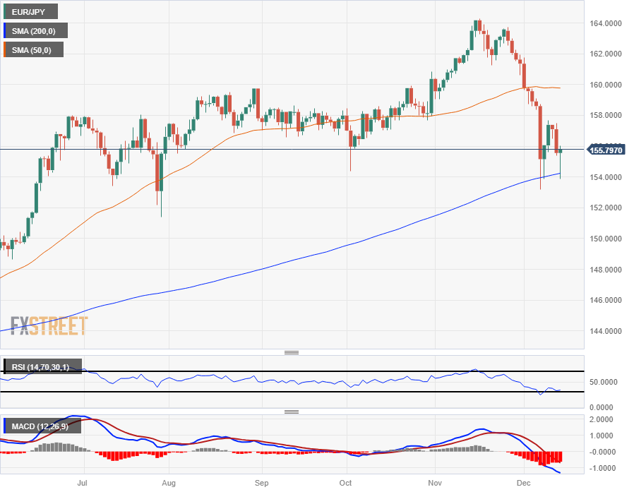 The EUR/JPY has been struggling to develop a breakout from back-and-forth action around the 155.00 handle, with the pair skidding along the 200-day Simple Moving Average (SMA) just above 154.00.