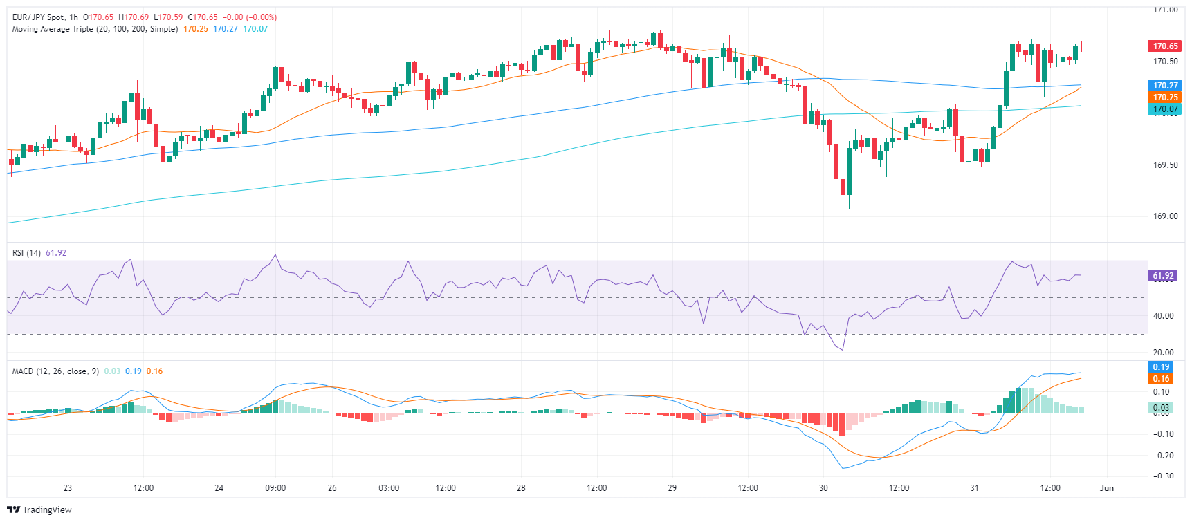 On Friday’s trading session, despite recent downside corrections, the EUR/JPY pair managed to reclaim its stance above 170.00. This indicates a shifting of the bearish momentum observed on Thursday when the pair marked a daily low at 169.00.