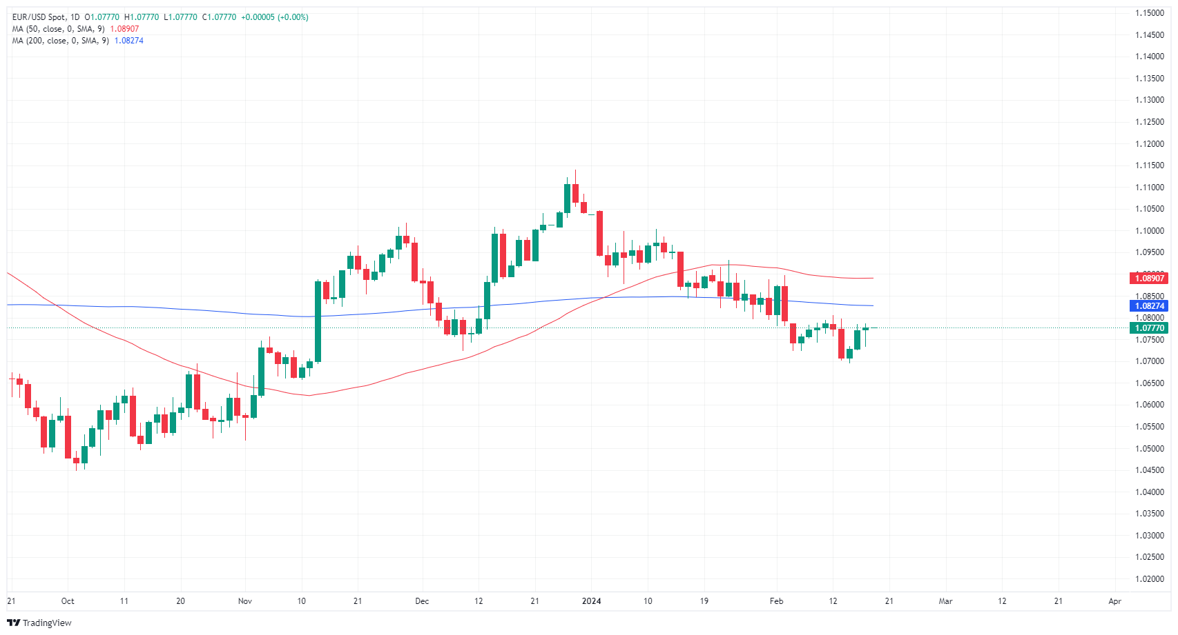 EUR/USD drifted back into median prices in thin Monday trading as the pair remains hampered below 1.0800. Markets opened on a quiet note with US markets dark for the US federal holiday. US liquidity will return to the fold beginning on Tuesday.