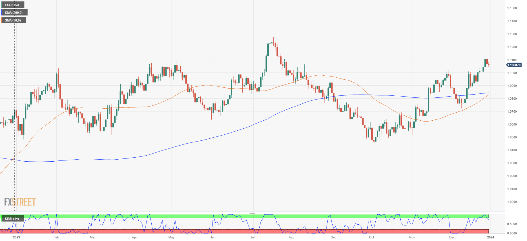 With the EUR/USD stuck in place near 1.1050 on the intraday charts, the Euro is set to drift between the 50-hour and 200-hour Simple Moving Averages (SMAs) as the 2023 trading year rounds the corner into 2024.