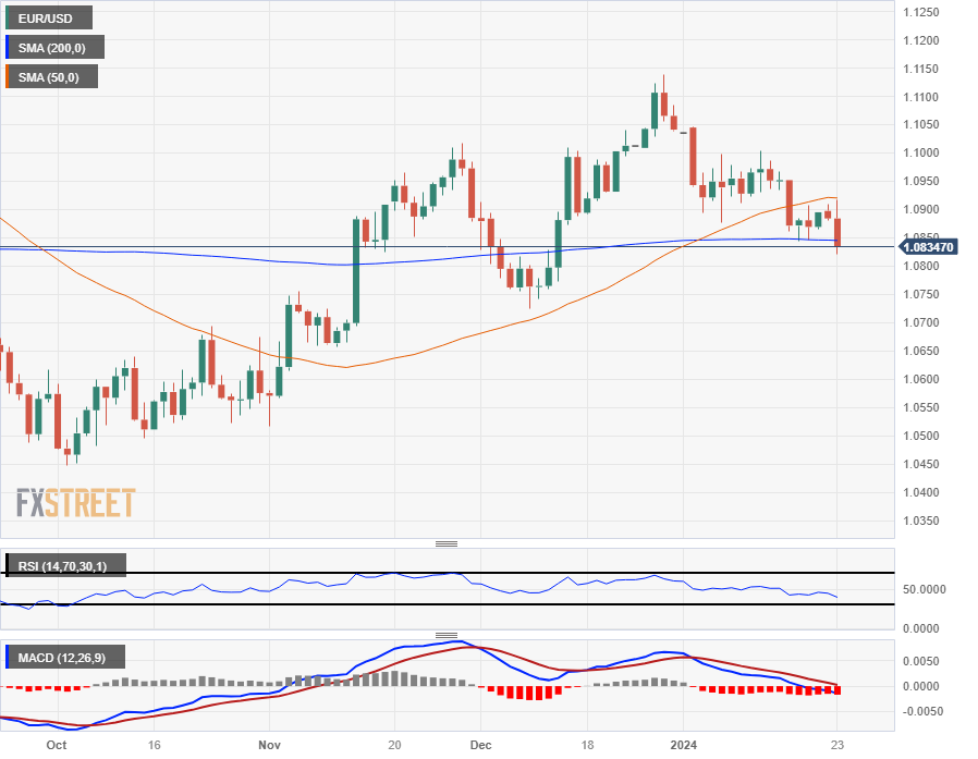 The EUR/USD tumbled into fresh lows for 2024, hitting its lowest bids in nearly six weeks after the Euro extended broad-market declines on the back of souring consumer sentiment and declining bank lending activity confirmed by the latest Bank Lending Survey from the European Central Bank (ECB).