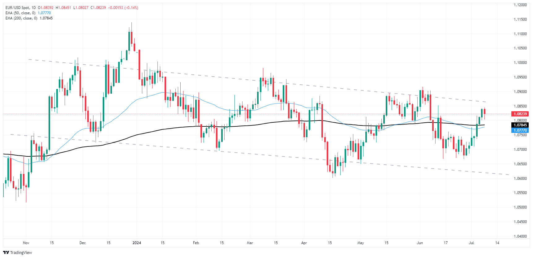 Daily candles continue to churn in the midrange of a rough descending channel through 2024, and EUR/USD is set to face a drooping technical ceiling as the upper bound eases to 1.0850.