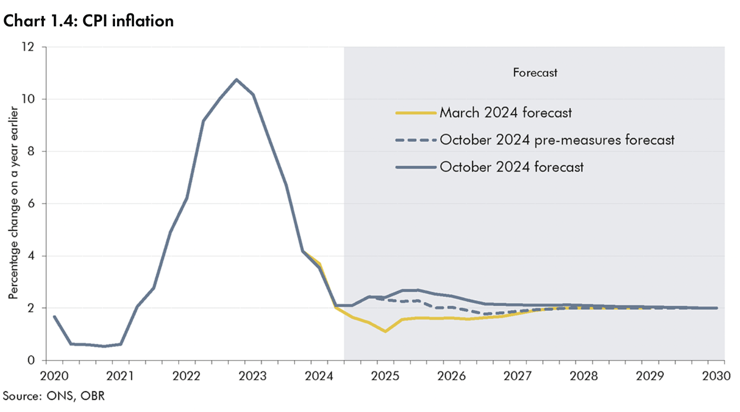 • This comes despite substantially higher inflation forecast for 2025 due to the government’s autumn Budget.