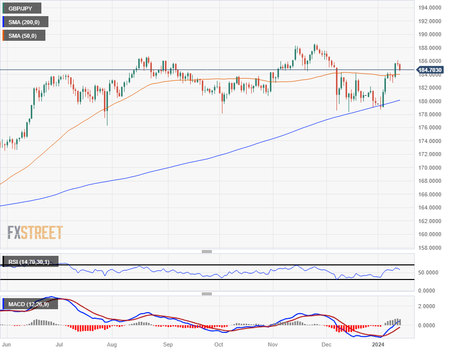 The GBP/JPY has softened back towards the 184.50 level on Friday, easing back from the week’s peak bids near 186.15 set on Thursday. The pair has gained steadily in 2024 trading and despite Friday’s soft pullback remains up 3.3% from January’s early bottom bids near 178.75.