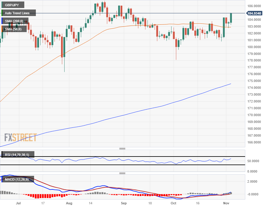 The GBP/JPY has pierced the 185.00 handle as the market heads into the final hours of the trading week, pushing into an 8-week high as broad market risk appetite finds a firm recovery.
