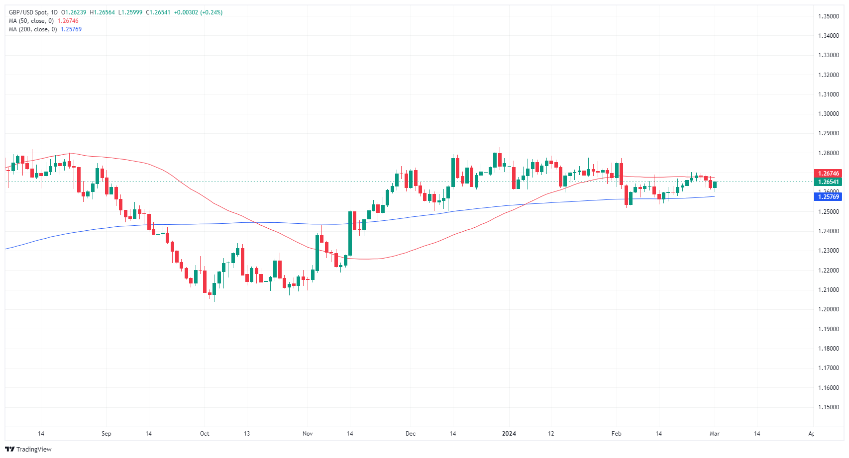GBP/USD caught a ride on Monday, bumping back into the 200-hour Simple Moving Average (SMA) near 1.2650 after falling to a near-term low at the 1.2600 handle. Near-term technical momentum has been flat to bearish in the pair, and Thursday’s peak just above 1.2680 remains a key technical ceiling for bullish momentum.