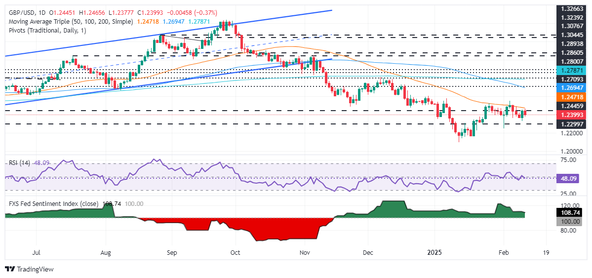 The Pound Sterling slipped during the North American session after the latest United States (US) inflation report showed that prices continued to rise, pushing back expectations of a Federal Reserve rate cut in the first half of 2025. The GBP/USD trades at 1.2387, down 0.47%.