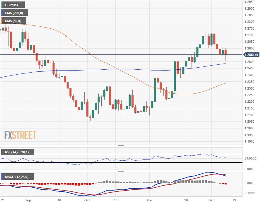 The Pound Sterling shed the 200-hour Simple Moving Average (SMA) early in the week, descending below the 1.2600 handle to remain capped on the low side for the rest of the trading week. The GBP/USD pressed into a new weekly low near 1.2500 on Friday, and heads into the market close struggling to hold onto 1.2550 below the 50-hour SMA.