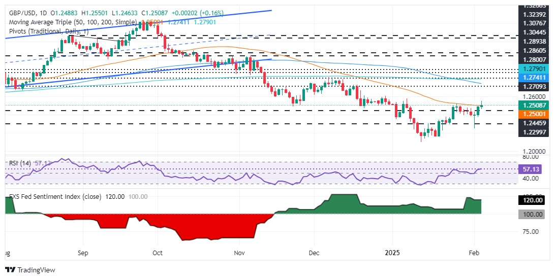 The Pound Sterling remains bid for the third consecutive day, edges up 0.34% as the GBP/USD trades at 1.2519 above the 50-day Simple Moving Average (SMA) at 1.2501.