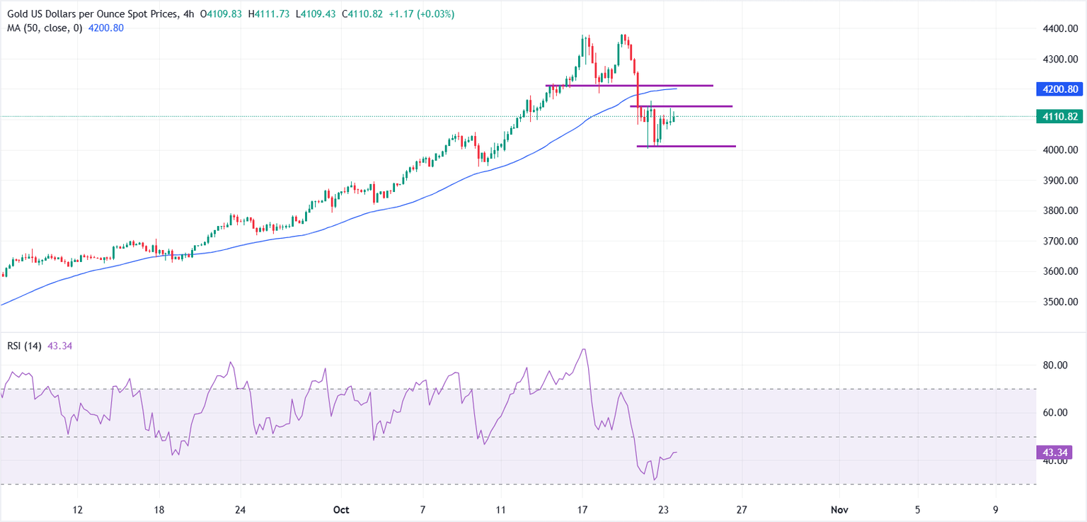 XAU/USD is consolidating within a range between $4,000 and $4,150 as traders await fresh catalysts, likely Friday’s CPI report, for the next directional move.