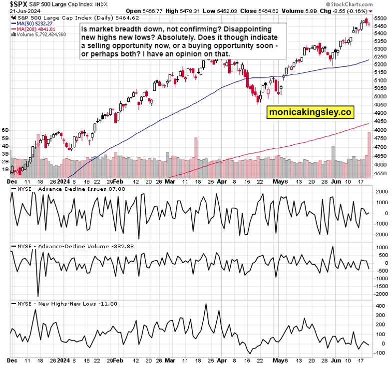 What though to do with the dollar, USDJPY on the march, Norinchukin fear mongering, NVDA insider selling and its two day drop of around 10%? Are technical charts showing damage, much damage? You just see market breadth on pause as rotations are underway from Nasdaq to the benefit of some discretionaries and communications companies, to name a few. Also industrials have held up quite well during the rising dollar.