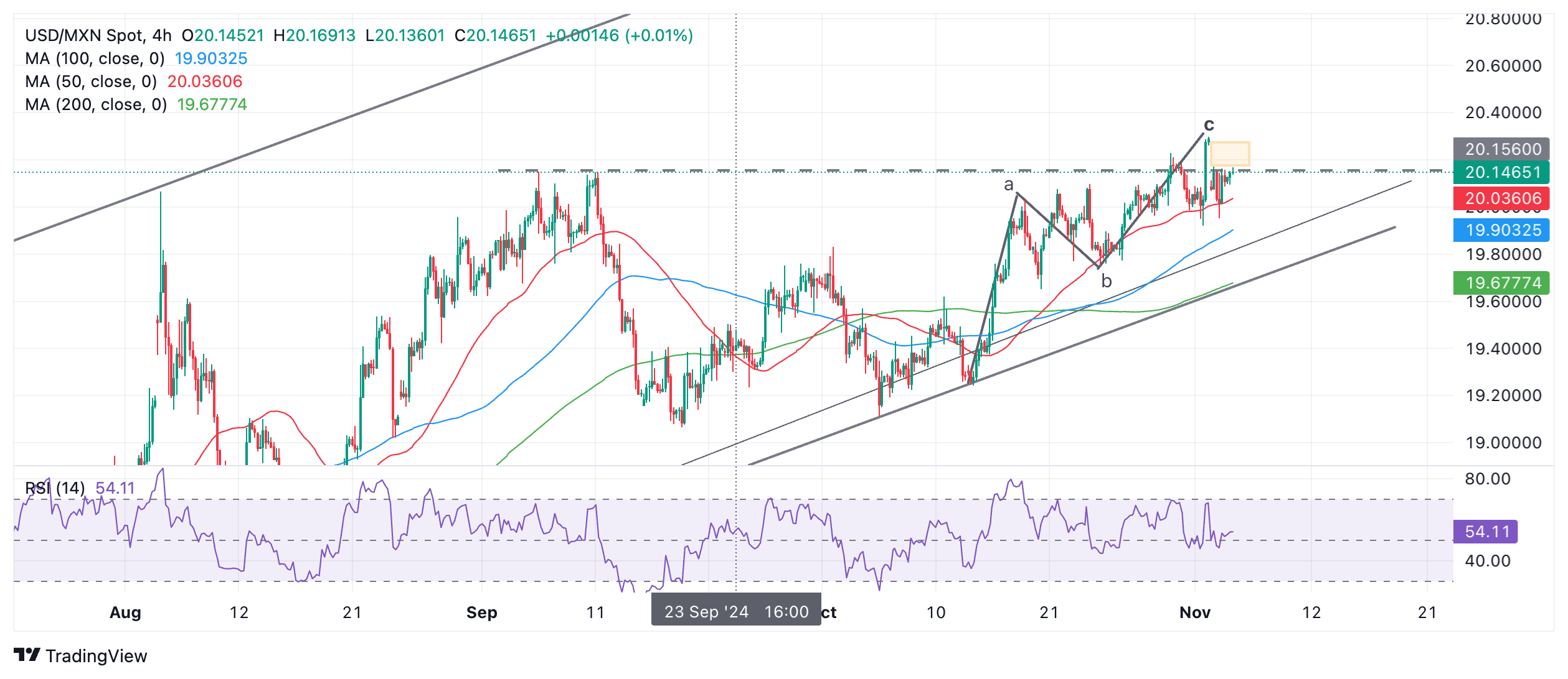 USD/MXN 4-hour Chart