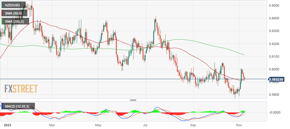 NZD/USD – the number of US Dollars one New Zealand Dollar can buy – slipped lower for the third day in a row on Wednesday. The pair is pulling back after peaking at 0.6002 on November 6.