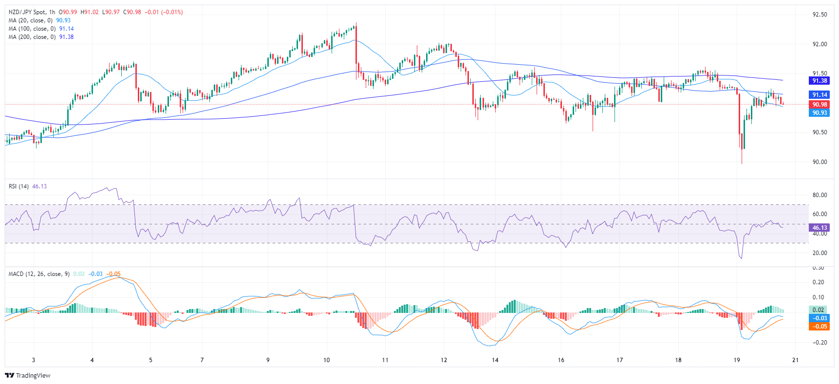 • The NZD/JPY plunged below the crucial short-term 20-day SMA, hinting at immediate bearish prospects.