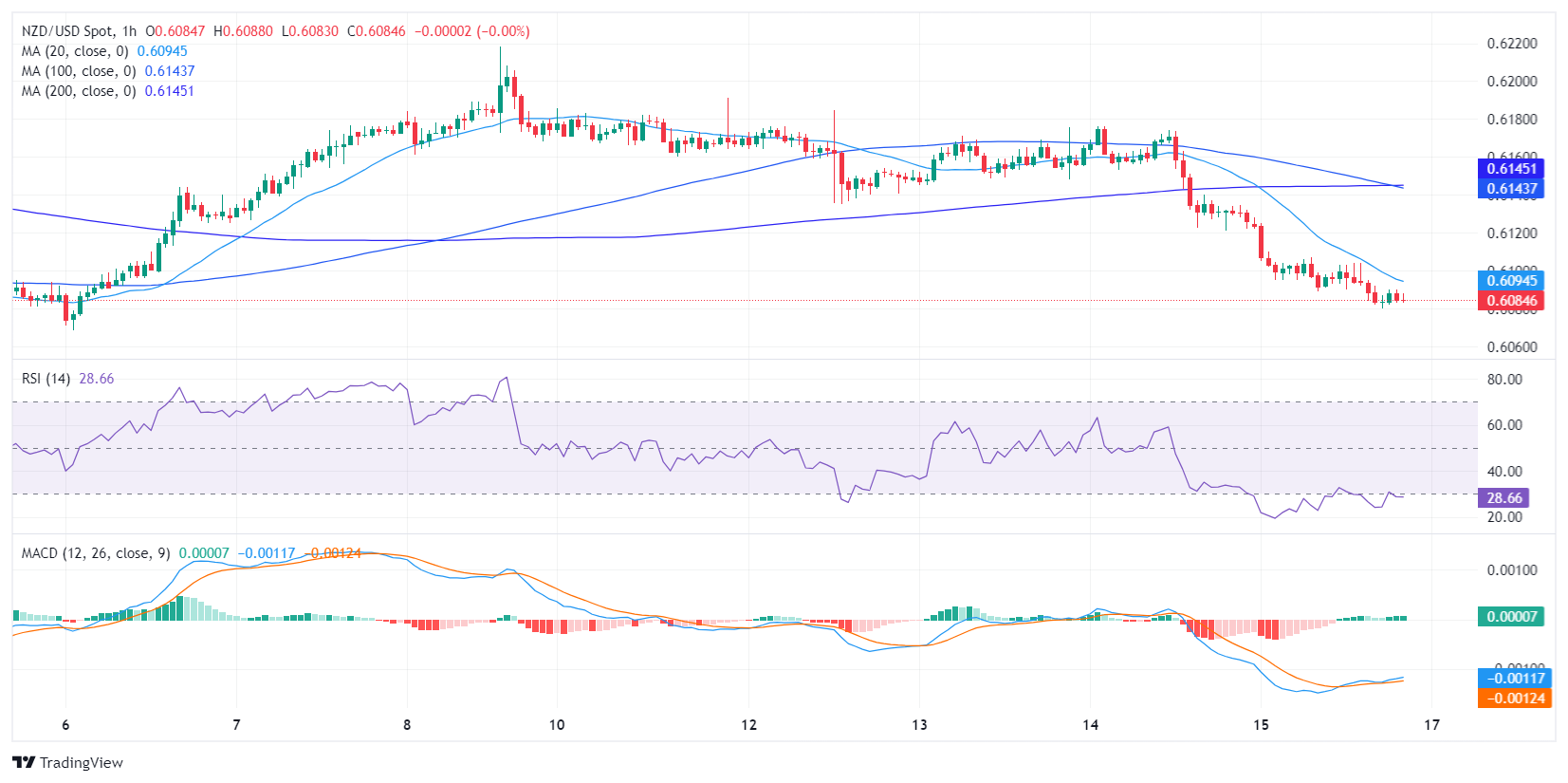 The NZD/USD pair declined to 0.6086, with a significant 0.77% downturn in Friday’s session. The market sentiment leans heavily toward the sellers, however, there is a faint glimmer of hope for the buyers, as they still hold on to the 200-day Simple Moving Average (SMA).