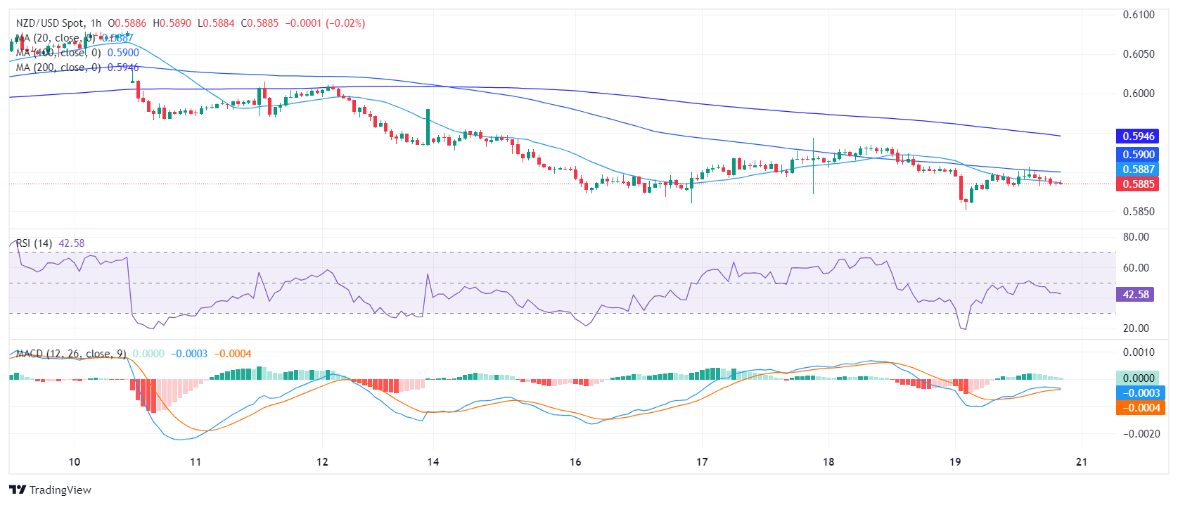 - The daily RSI for the NZD/USD reveals growing selling pressure, nearing oversold conditions.
