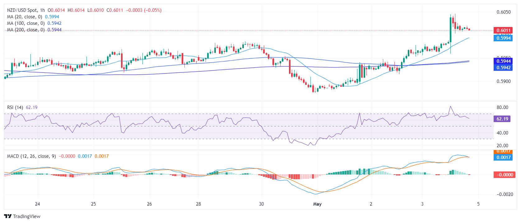 Regarding the overall market trend, the NZD/USD is trading below the 100, and 200-day SMA which confirms the presence of significant downside pressure on the pair and challenges short-term buyers. Notably, the pair encountered rejection around the 100-day SMA at the 0.6100 level during Friday’s session, suggesting the buyers still need more traction to turn the outlook bullish. However, the break above the 20-day SMA definitely brightened the outlook for the short term.