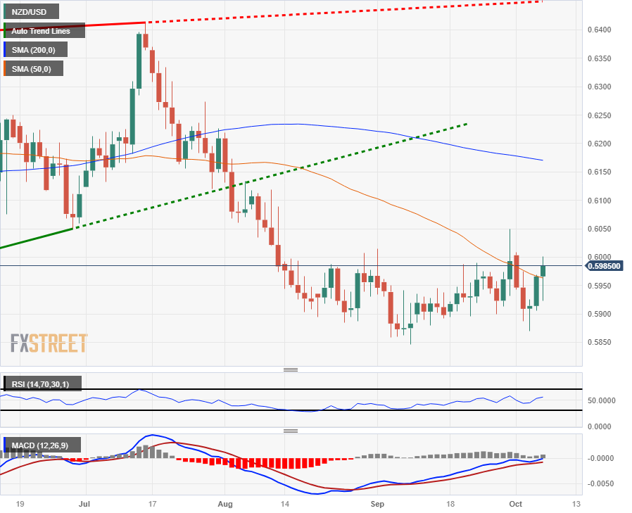 With the US NFP barrelshot out of the way, markets are stepping away from the US Dollar (USD) to close out the trading week, and the NZD/USD has rebounded from Friday’s low of 0.5923 and is now trading back slightly into 0.5980 after briefly tipping into the 0.6000 major handle.