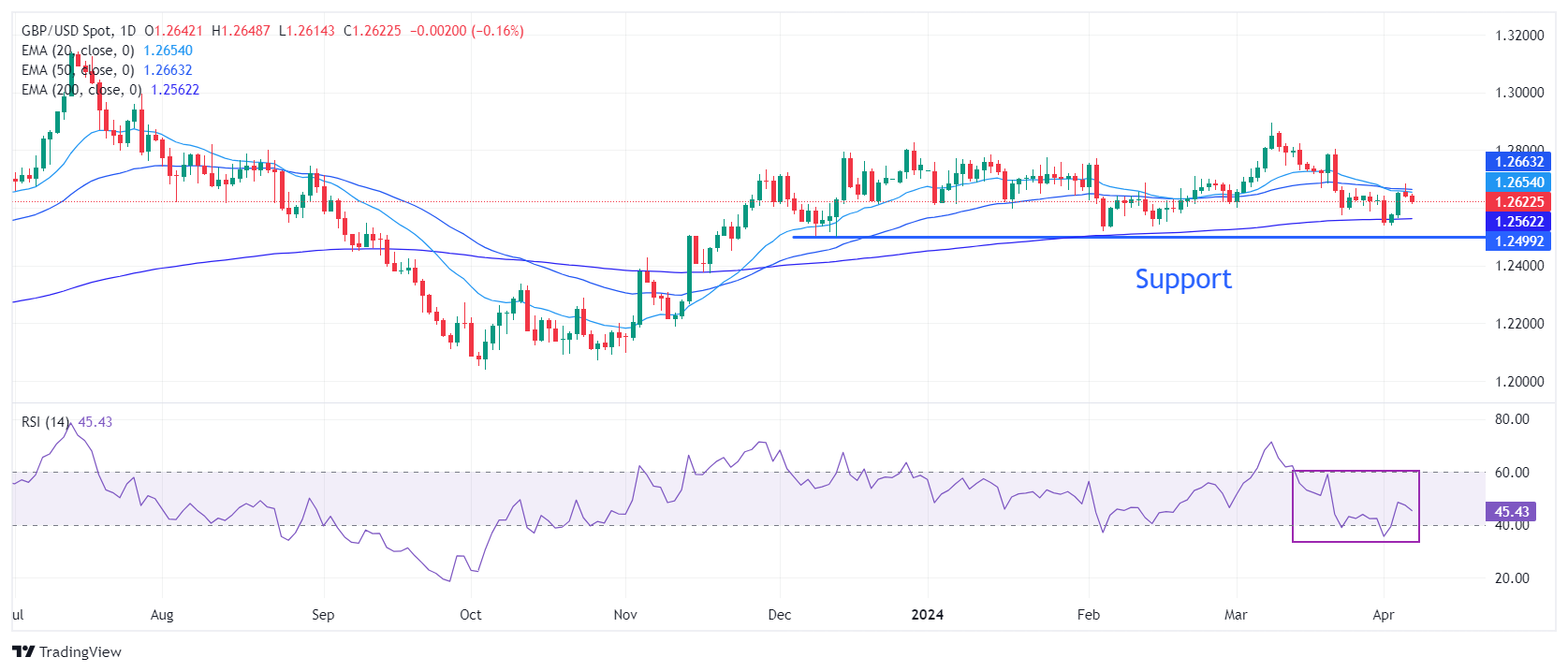 The Pound Sterling (GBP) retreats to 1.2620 in Friday’s London session after failing to recapture the round-level resistance of 1.2700. The GBP/USD pair falls back as escalating geopolitical tensions and caution among market participants ahead of the United States Nonfarm Payrolls (NFP) report for March has boosted demand for the US Dollar. Read more…