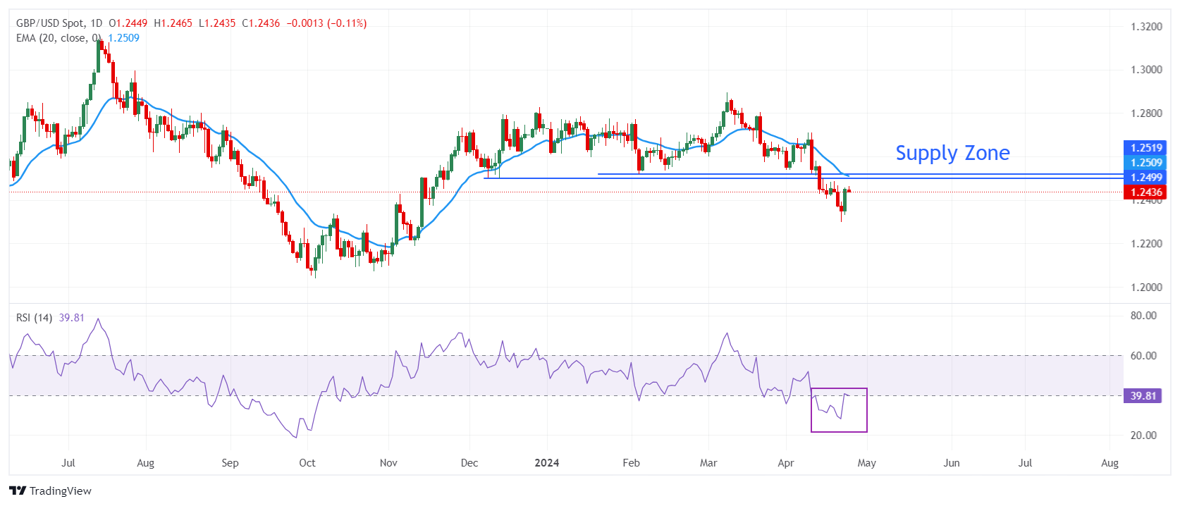 GBP/USD Price Analysis: Rises to near 1.2450 despite the bearish sentiment