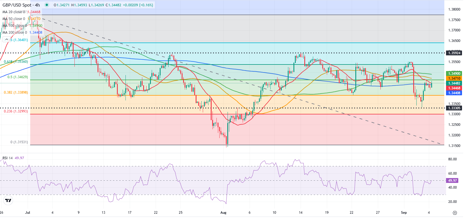 Following Tuesday’s sharp decline, GBP/USD staged a rebound and closed in positive territory on Wednesday. The pair trades in a narrow band at around 1.3450 in the European session on Thursday as market focus shifts to the next batch of macroeconomic data releases from the US.