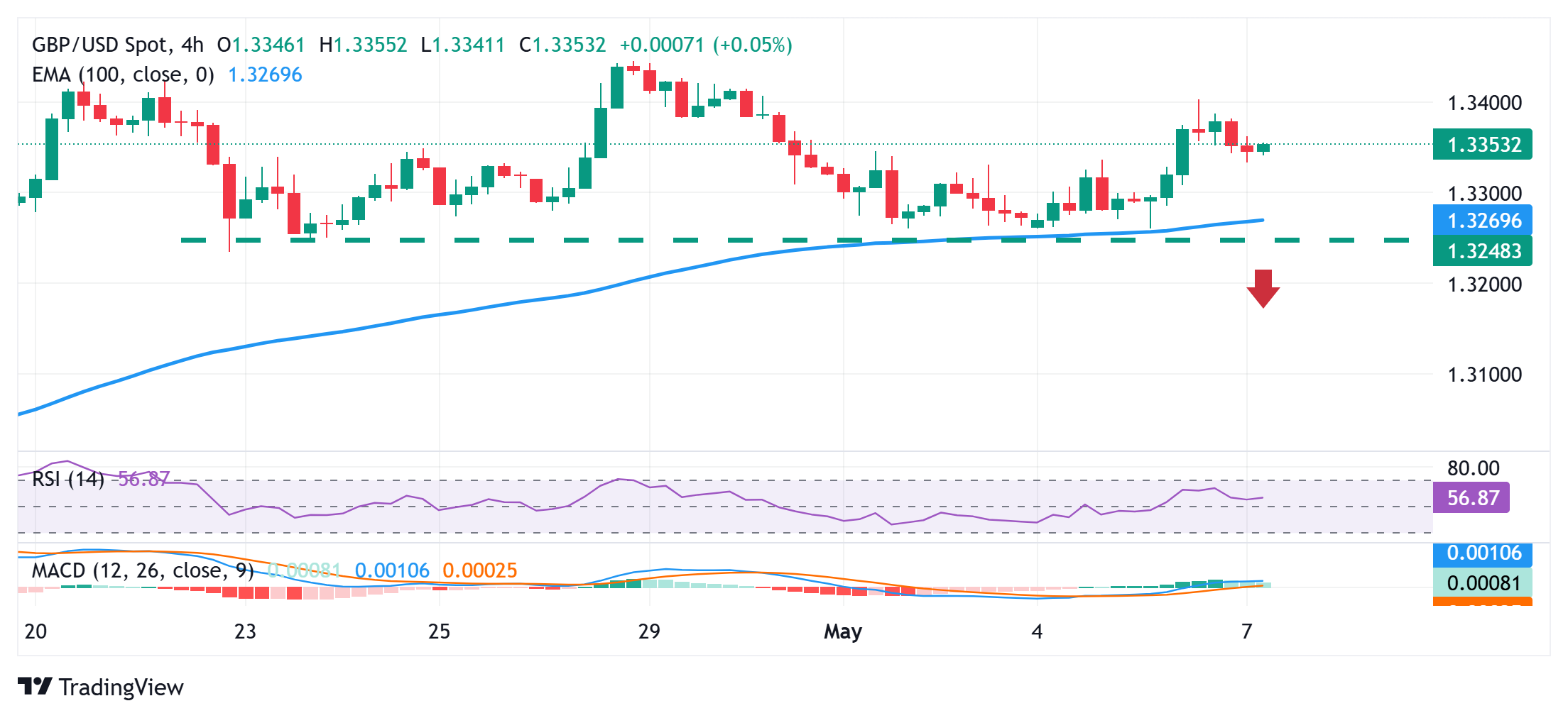 GBP/USD Price Forecast: Slides to mid-1.3300s amid some USD buying ahead of Fed decision