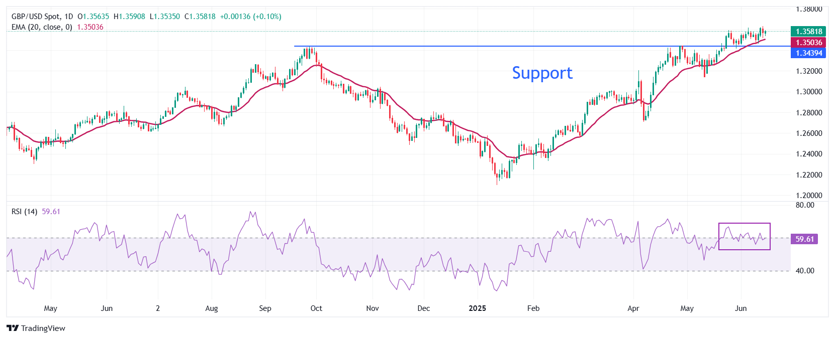 GBP/USD rebounds above 1.36 as Israel-Iran conflict deepens, Dollar weakens on risk shift