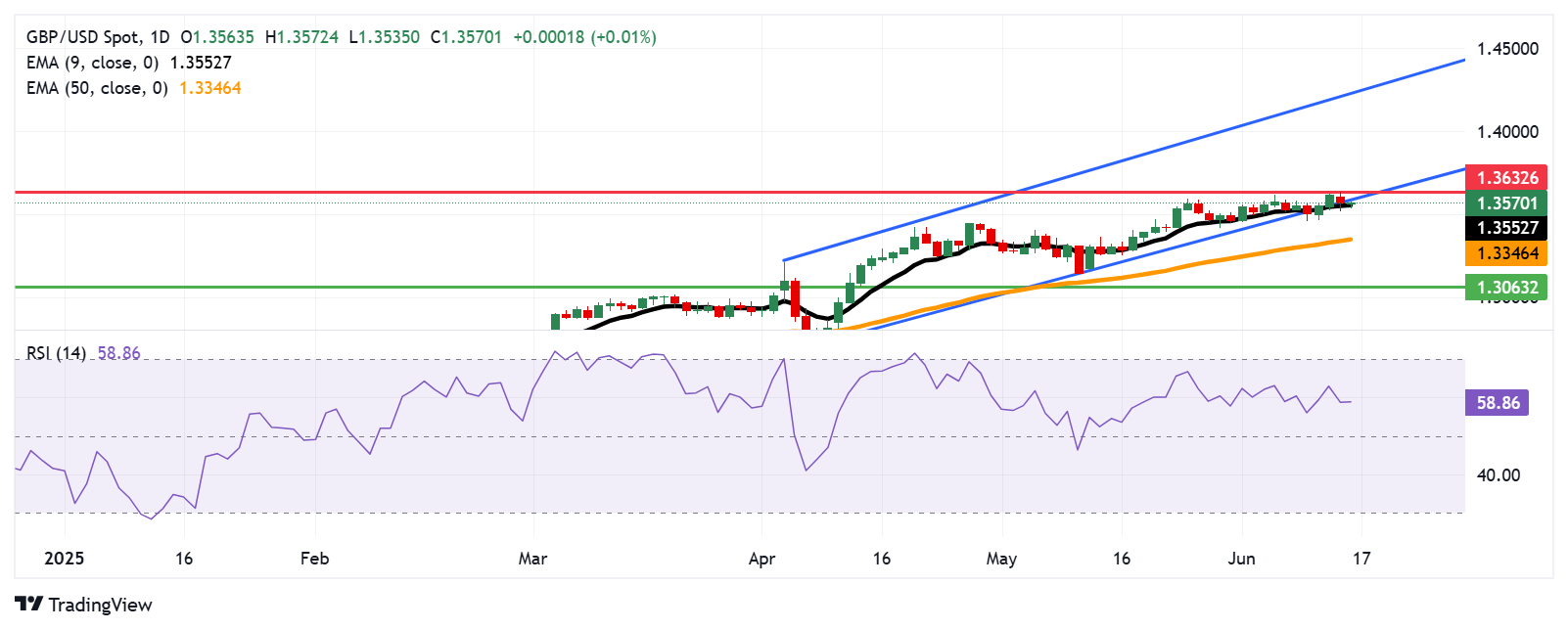 GBP/USD Price Forecast: Treads water above 1.3550, nine-day EMA