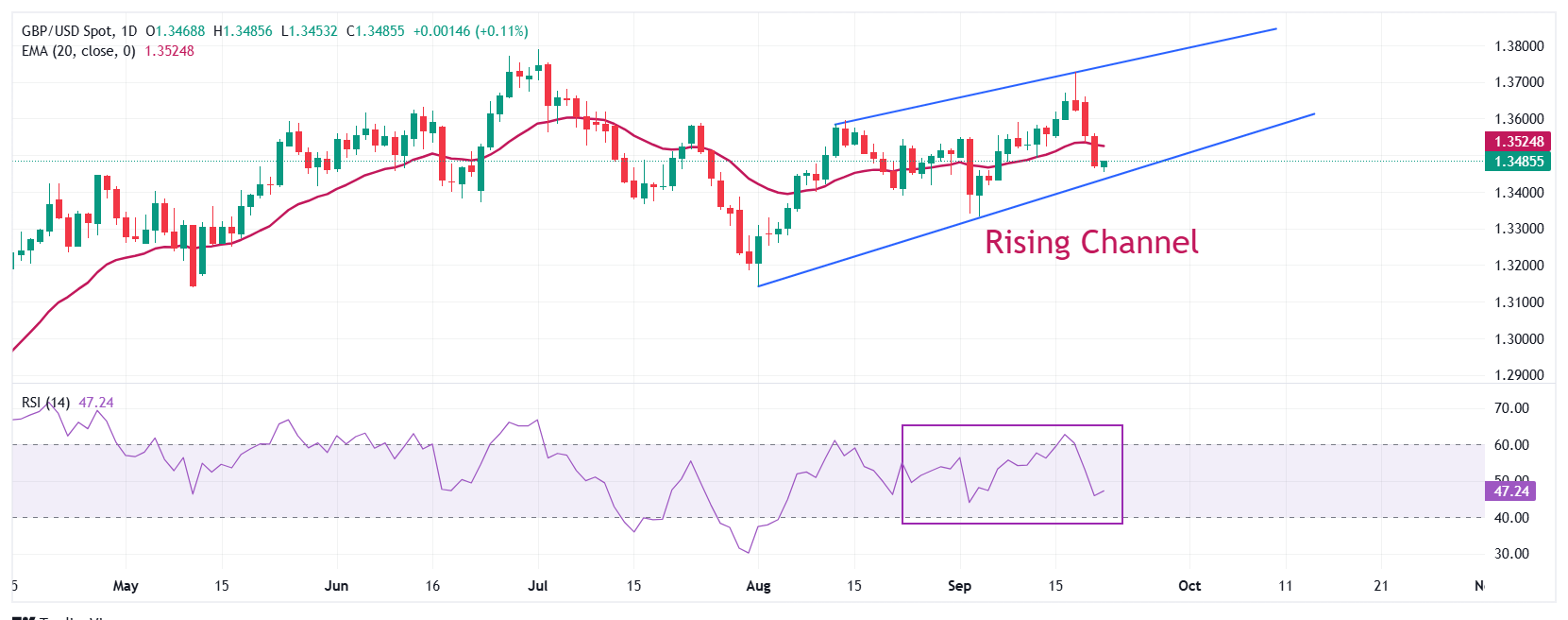 The GBP/USD pair continues its four-day losing streak, trading around 1.3460 during the Asian hours on Monday. The bearish shift appears as the daily chart’s technical analysis shows that the pair is on the verge of breaking below the ascending channel pattern. Read More…