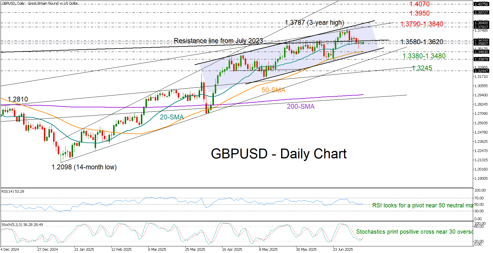 GBP/USD is drawing buyers’ interest after briefly dipping below its 20-day simple moving average (SMA) and a week after retreating from the three-year high of 1.3787.