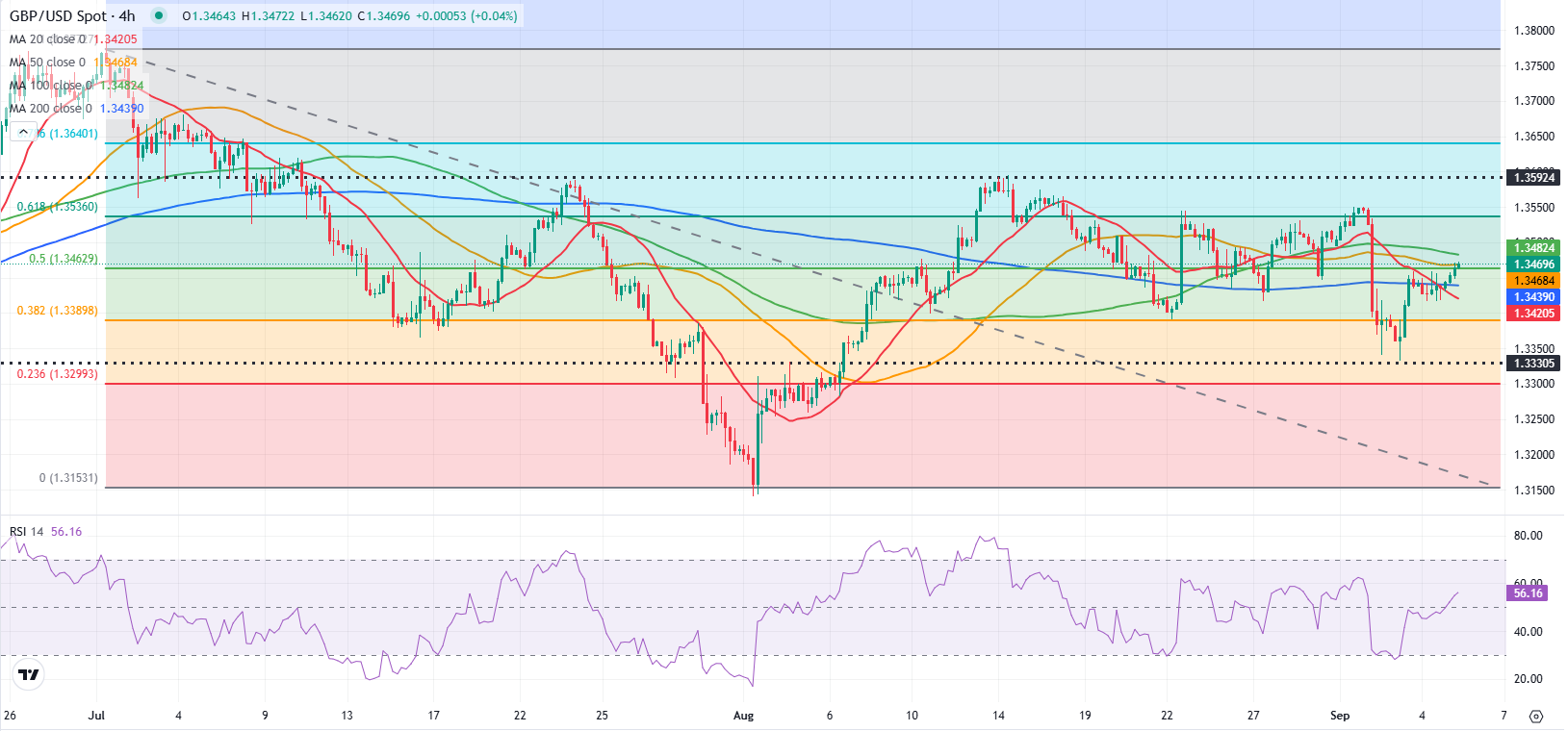 After failing to make a decisive move in either direction on Thursday, GBP/USD gathers bullish momentum and trades above 1.3450 in the European session on Friday. The pair faces a strong resistance at 1.3480 as investors await the August labor market data from the United States (US).
