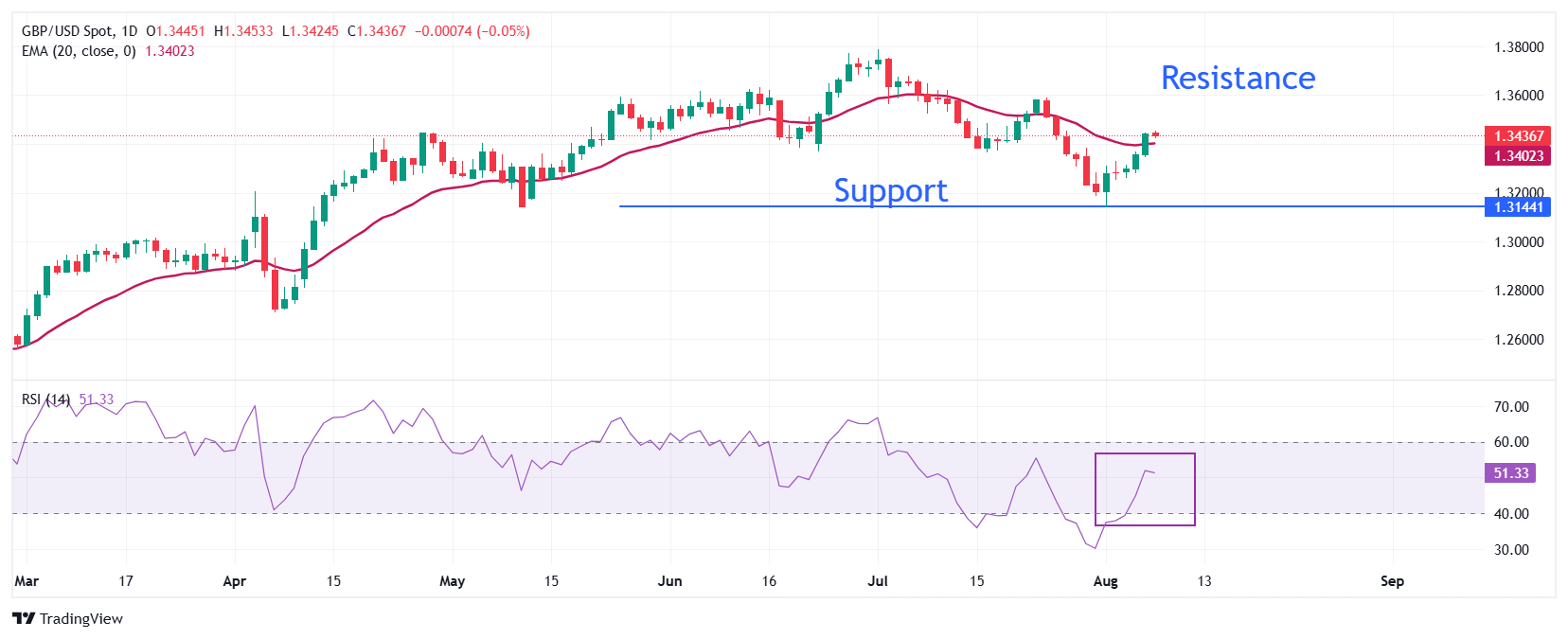 The Pound Sterling (GBP) clings to three-day gains around 1.3450 against the US Dollar (USD) on Friday. The GBP/USD pair trades firmly as upbeat expectations that the Federal Reserve (Fed) will cut interest rates in the September meeting have kept the US Dollar on the back foot. Read More…
