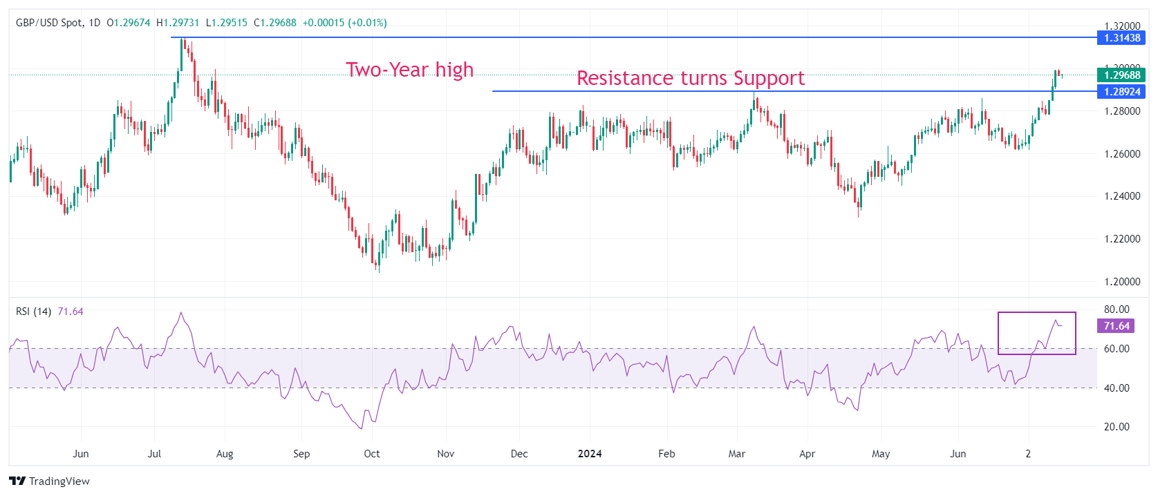 GBP/USD maintains position around 1.2950 near 13-month highs