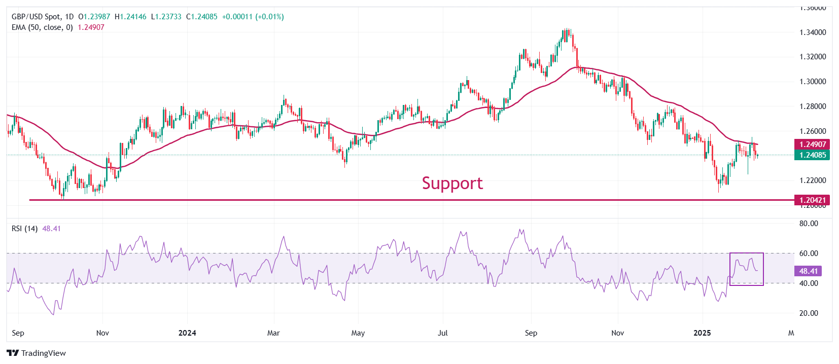 GBP/USD Price Forecast: Hovers around 1.2400; seems vulnerable while below 50-day SMA