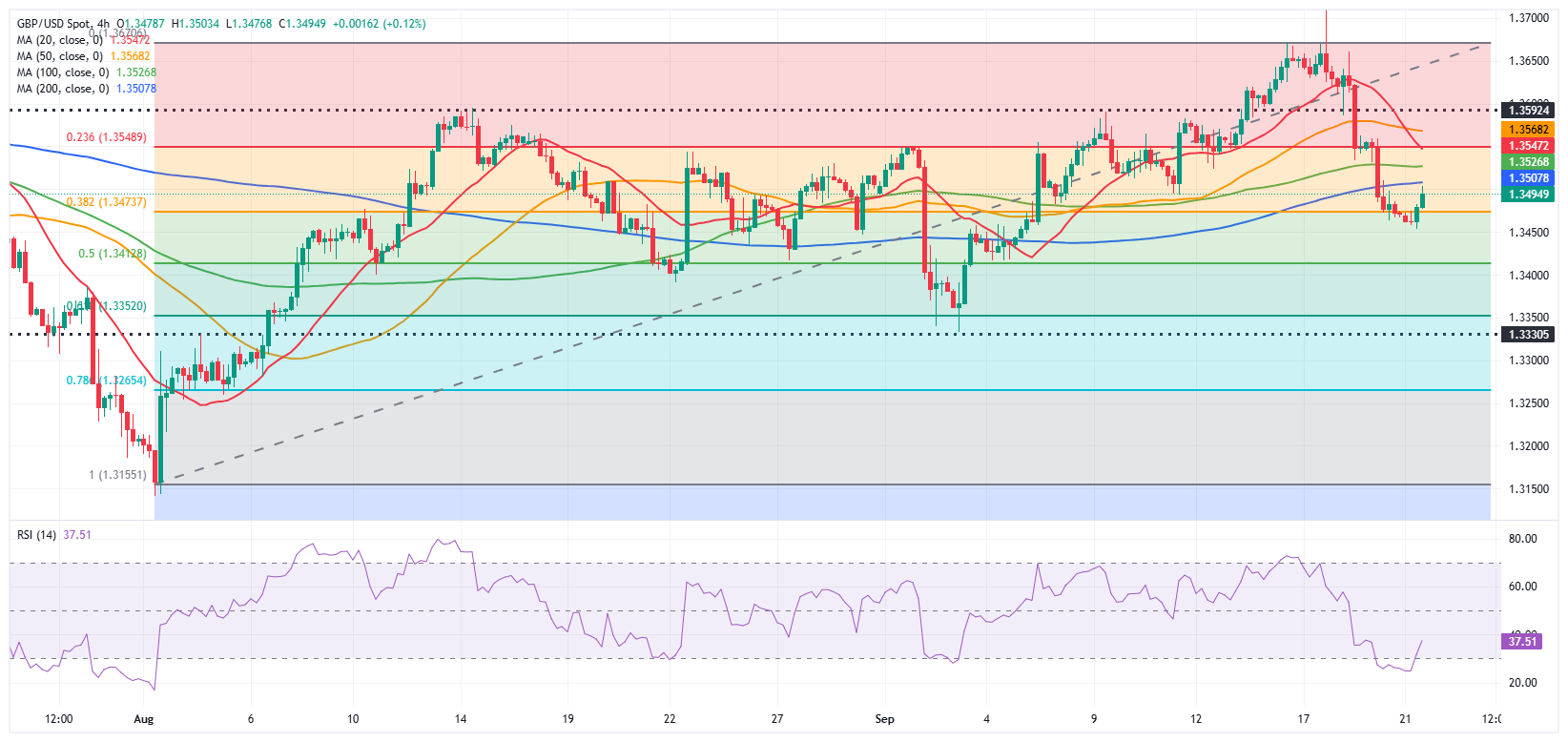 GBP/USD finds it difficult to keep its footing following Monday’s recovery and trades marginally lower on the day at around 1.3500. The technical outlook suggests that the pair remains bearish in the short term.