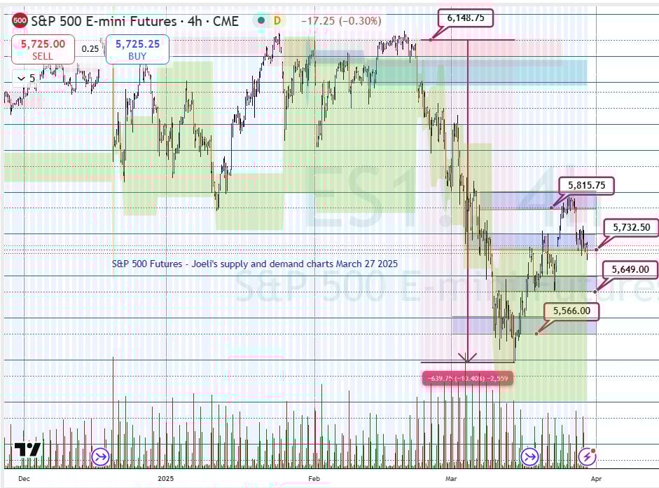 The S&P 500 futures index has retraced approximately half its previous losses from a steep sell-off that began at 6148. After rejection at 5818, prices now hover precariously above critical Support at 5732.