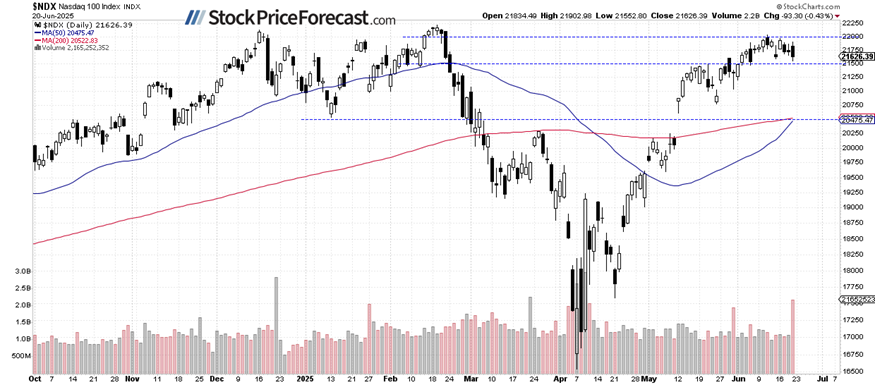The Nasdaq 100 closed 0.43% lower on Friday, showing relative weakness compared to the broader market. Still, the decline was rather muted given the geopolitical context.